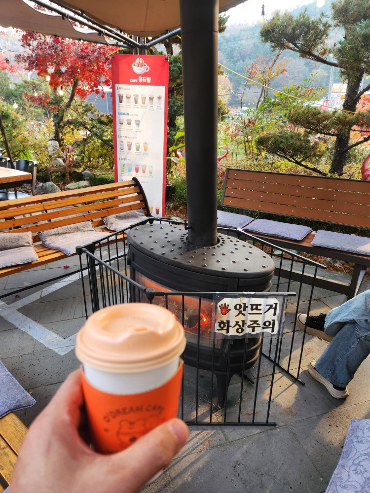 식사 후에는 바로 옆에 위치한 연계 카페 **'CAFE O'Dream'**을 이용할 수 있어, 밥과 커피를 한 번에 해결할 수 있는 **'원스톱 드라이브 코스'**로도 완벽합니다. 특히 야외 테라스에 마련된 운치 있는 장작 난로(화상 주의!) 앞에서 따뜻한 음료를 마시는 시간은 잊을 수 없는 힐링을 선사합니다.